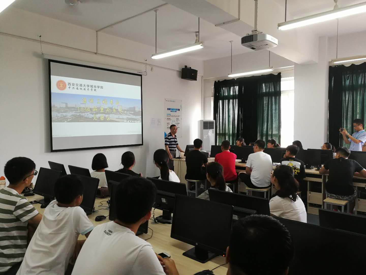8月26日下午2点,组织18级新生家长见面会和ICT基地参观活动,新生家长见面会上特邀中兴学院院长冯恩信参加,冯院长为家长及新生介绍西安交通大学城市学院和中兴通讯技术学院情况,西交城市项目部郭效海老师为家长及