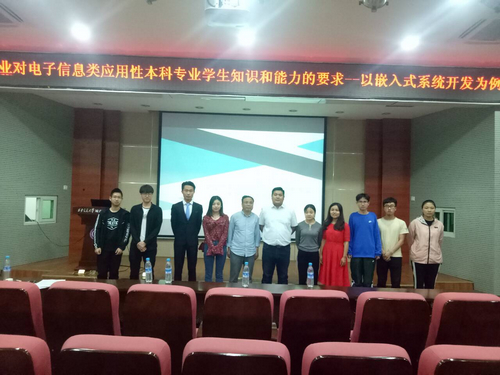 5月2日,电气与信息工程系在F100开展了主题为“企业对电子信息类应用型本科专业学生知识和能力的要求——以嵌入式系统开发为例”的专题讲座。电信系副主任冯恩信教授、电信系学生工作主管王姣老师、电信系团工委书记李璐老师及全体电子信息工程专业学生出席。