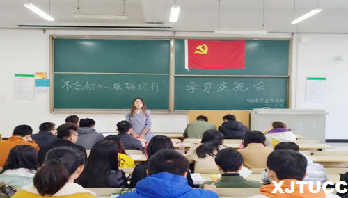 最后,学生支部书记王姣老师做了总结发言,她表示作为一名思想政治教育工作者,必将坚守立德树人的初心,努力成为学生成长成才的人生导师。希望学生党员要以十九大精神为指引,不忘初心刻苦学习、历练品质,紧密结合学习生活实际,发挥出党员的先锋模范作用。