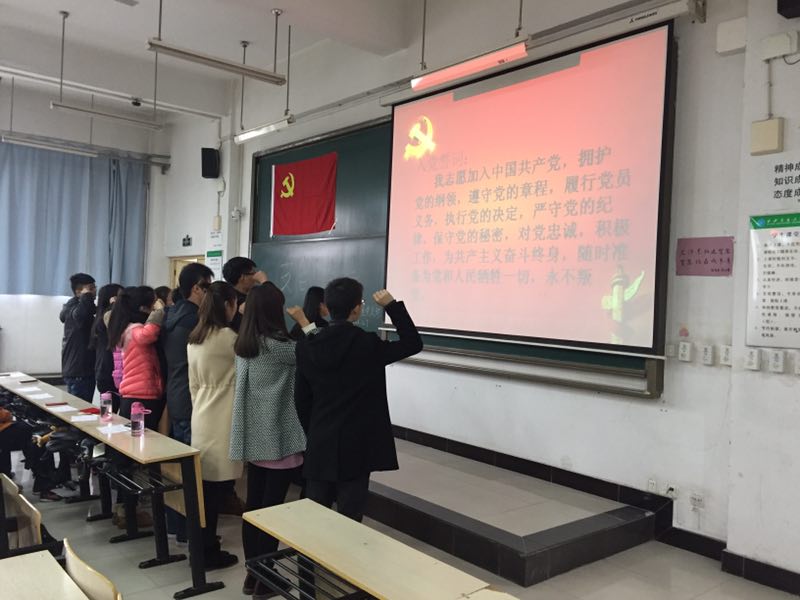 电信系学生党支部书记王姣老师出席仪式,33名学生党员参加了此次活动。