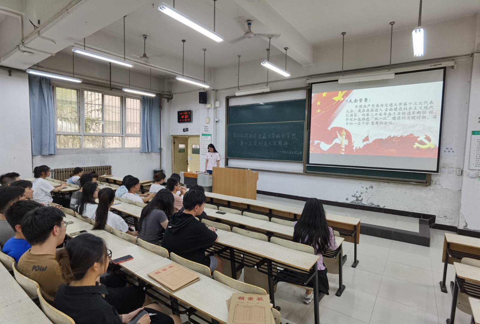 刘仕怡同志介绍了中共西安交通大学第十三次代会大学的情况,带领全体党员认真学习大会报告、传达会议精神。刘仕怡同志结合会议报告起草的过程和部分细节,带领大家进一步了解十三次党代会的意义。他认为作为一名学生党员,应该以习近平新时代中国特色社会主义思想为指导,要吃苦耐劳、努力学习、自我创新、自我提升,努力为祖国建设贡献力量。