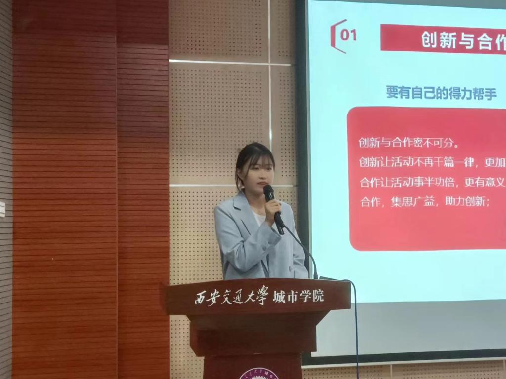 启动仪式在青春激扬的中国共产主义青年团歌中拉开帷幕。活动伊始,电信系团工委副书记马扬就此次活动内容及活动安排进行了详细阐述,并鼓励全体同学积极参与。随后,优秀团支部代表团支书吴双同学从活动创新性的重要性、全员合作的必要性以及鼓励各班级结合专业特点开展独有的特色活动等方面分享自己的团日活动经验。