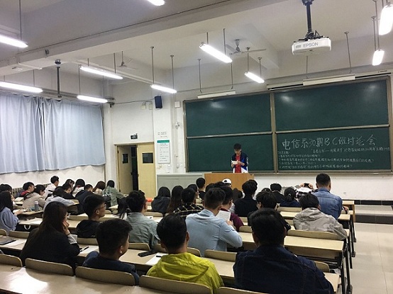 在五四青年节到来之际,为发扬五四精神,增强青年党员、团员先锋模范作用的发挥,电信系学生党支部于2019年5月5日21:10在教学楼B100召开了“青春万岁——纪念五?四运动100周年”主题讨论活动,电气与信息工程系全体三十期党课培训班学员参加,学生党员孟庆宇主持。