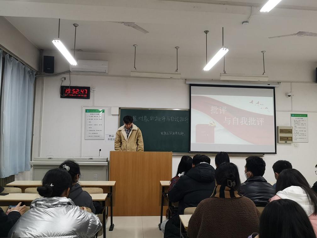 首先,王姣老师开展了“批评与自我批评”的主题党课。王姣老师向大家介绍了批评与自我批评的由来以及党章对批评与自我批评的相关规定,同时讲了为什么要开展批评与自我批评。接着,她讲了如何开展批评与自我批评。王姣老师指出,要勇于正视自身存在的问题、敞开思想说出真话、正确对待群众的意见,还要求全体学生党员应自觉把批评与自我批评作为终身课题,要有正确的态度做出实事求是的回答,分清是非以理服人,谈心交心增进团结。之后,王姣讲了开展批评与自我批评需要克服的困难,比如面子观念、人情观念等。最后,她向全体党员介绍了党员的权利和义务,并由全体党员围绕批评与自我批评进行自主讨论。