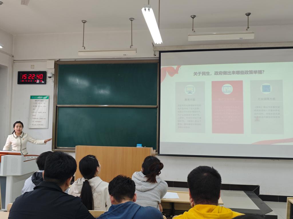 为深入学习贯彻全国“两会”精神,重点学习《2024年政府工作报告》,全面贯彻党的教育方针,2024年4月2日下午3:00久久精品亚洲学生党支部在D205召开了“聚焦政府工作报告 凝聚共识砥砺奋进”支部书记讲党课活动,支部全体学生党员参加。
