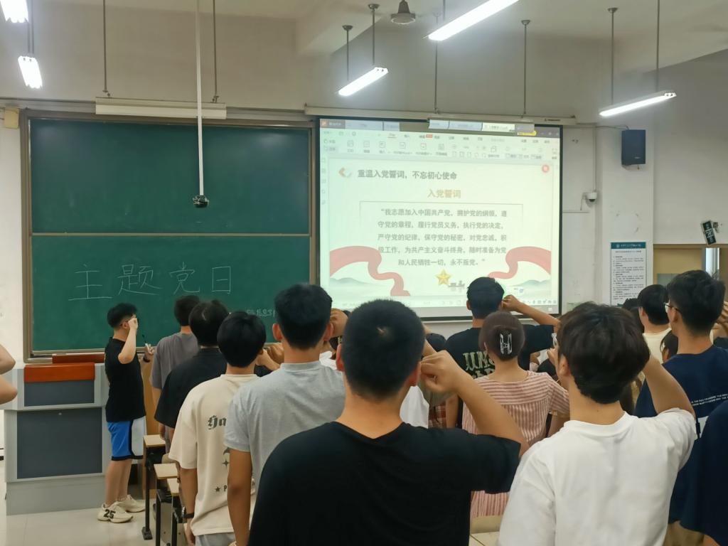 为进一步强化学生党员的党性教育,增强他们的使命担当意识,举行重温入党誓词仪式。每一位学生党员起立,举起右拳,铿锵有力的誓言回荡在教室的空气中,仿佛是对信仰的再次告白,对责任的再次承诺。这庄严的仪式不仅让学生党员回顾起当初的梦想与激情,更在他们心中深深植入了为共产主义事业奋斗终身的信念。