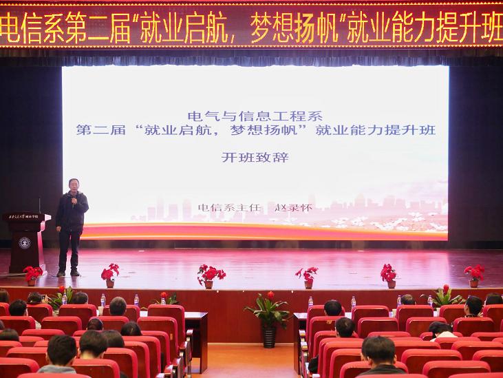 为全面提升电气与信息工程系学生就业创业能力,更好地帮助毕业班学生解决就业问题,我系于10月8日下午在教二报告厅举办第二届“就业启航,梦想扬帆”就业能力提升班。学生服务中心主任张学堂、电信系主任赵录怀、副主任冯恩信、系主任助理刘晓明、学生工作负责人,中兴学院学工主管樊超、电信系团工委书记徐娟、电信系教师韩雅莉、曹小鸽、电信系全体辅导员以及2022届全体毕业生参加本次会议。