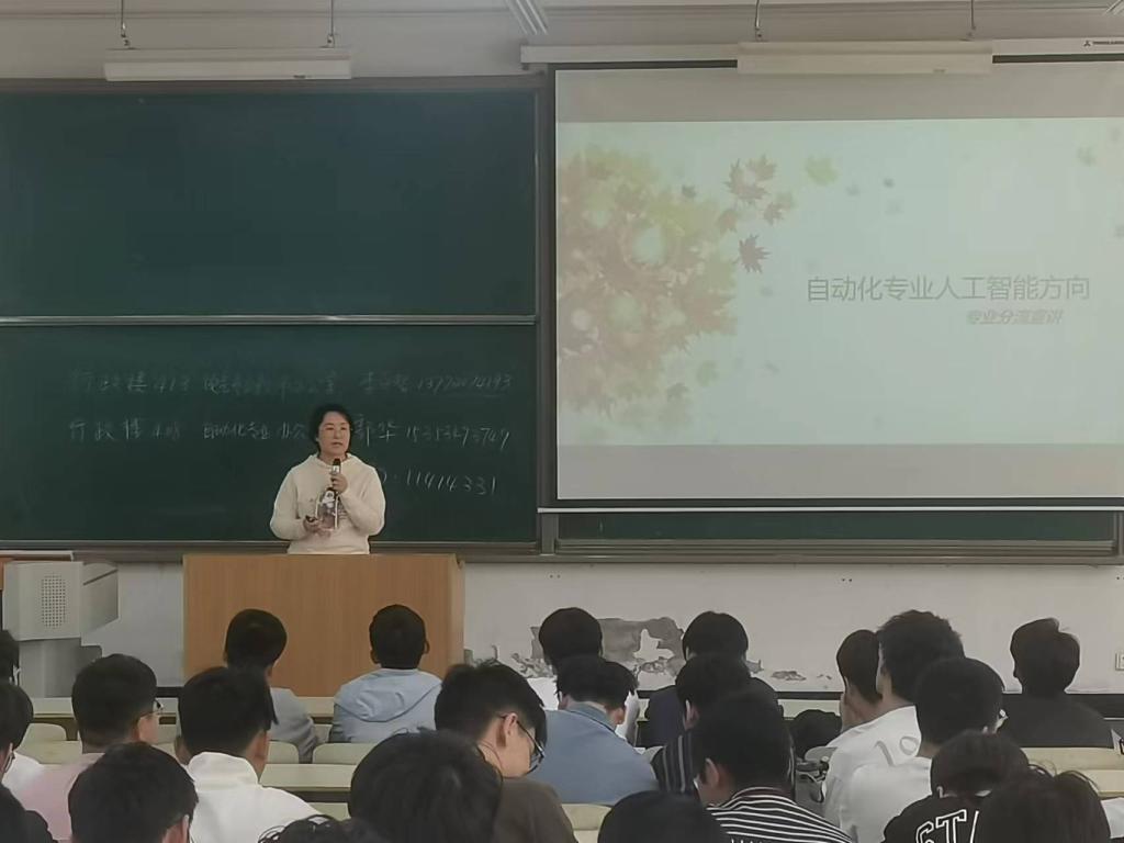 接下来,由自动化专业负责人郭华老师做专业介绍。郭老师从“以人工智能将引领人类第四次工业革命为引导”开始,通过对"人工智能是什么"、"人工智能的发展"、"人工智能所面临的问题"以及“人工智能方向课程安排”四个方面的详细阐述,重点介绍了自动化专业及人工智能方向。同时,通过大量生活实例,使同学们对为什么选择自动化专业、专业前景及就业方向有了更全面的了解和认识,为同学们的专业选择提供了具有建设性的指导和建议,干货满满。