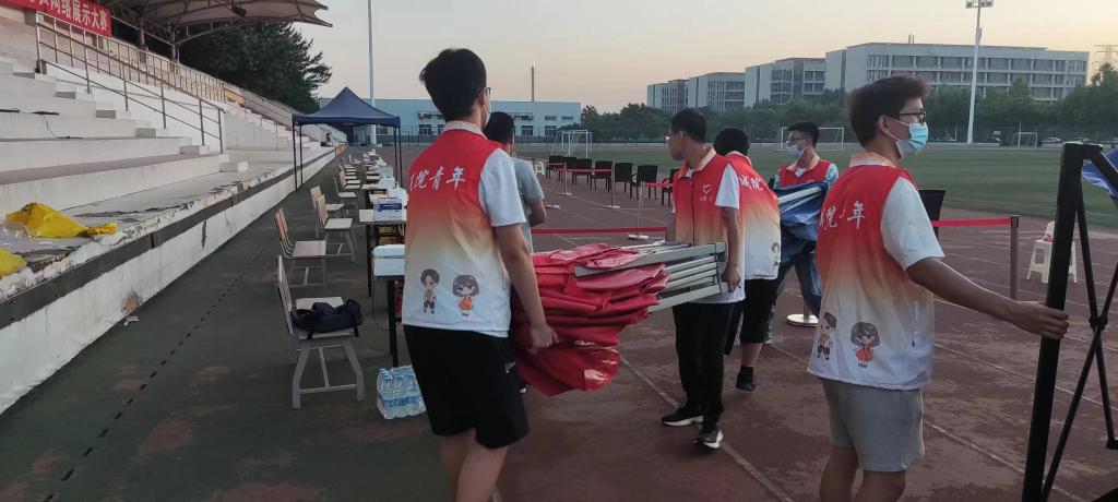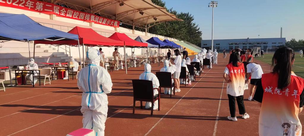 盛夏初生的太阳炙烤着大地,身着防护服的志愿者同学们衣服已经湿透,但没有人叫苦叫累,坚持完成志愿工作。他们像是烈日下的一股清新的风,吹拂着城院的学子,坚守在核酸检测现场。
