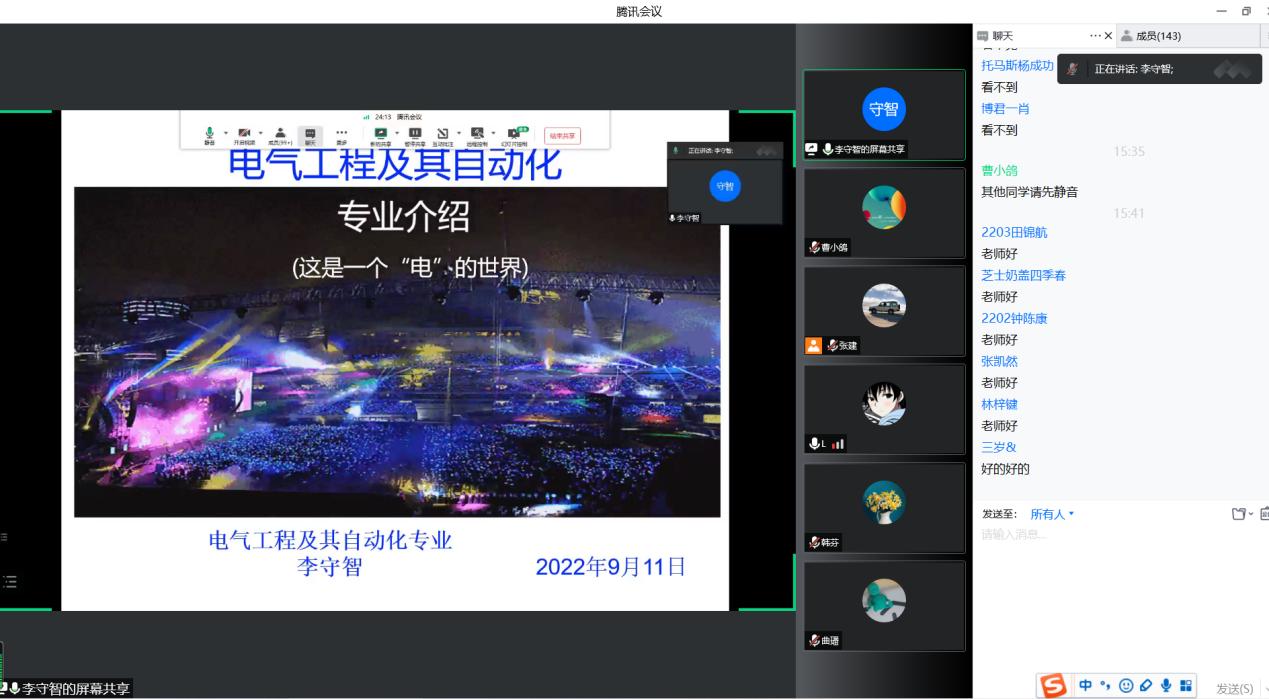 电气专业分会场由系主任助理张建主持,电气专业负责人李守智主讲。报告通过《这是一个电的世界》视频开场,为新生生动展示了电气专业是学什么的,激发学生兴趣,深化学科认知。接着李守智老师主要从专业介绍、培养方案及课程安排、实践实习、职业规划等几个方面,使同学对电气专业有了全面了解。