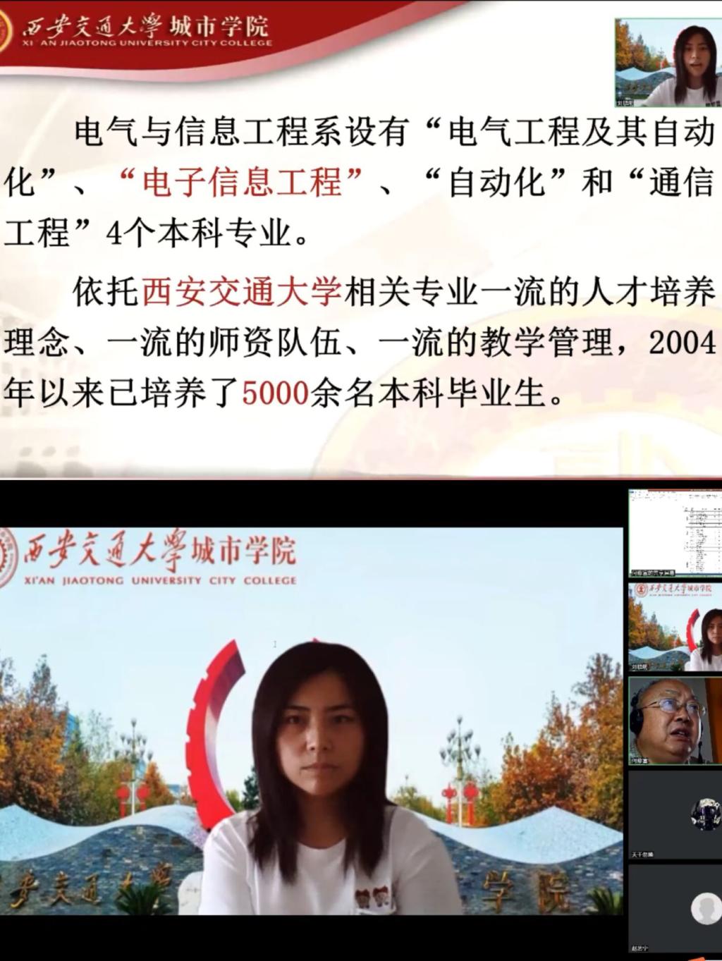 为加快2022级新生角色转变,强化专业认知,明确学习目标,西安交通大学城市学院电信系于9月11日下午15:00开展了2022级新生入学教育之专业认知教育(线上)报告会。本次报告由电信系三个专业分别展开,各分会场由系领导及各专业负责人主讲。各分会场对新生迈入人生新阶段,开启学业新篇章表示诚挚的祝贺和热烈的欢迎,并对各专业到会教师进行了介绍。
