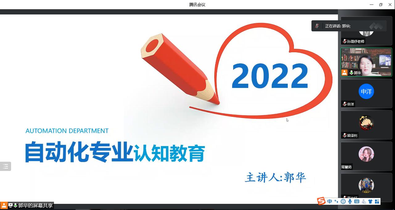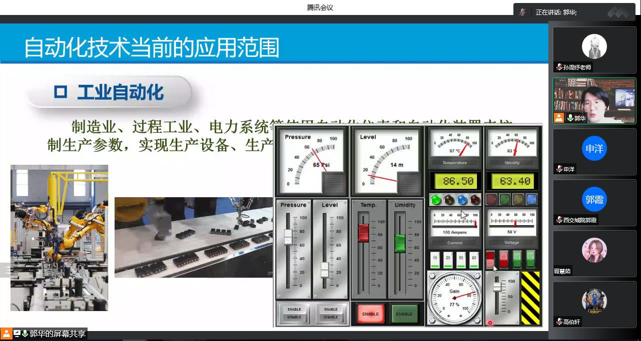 自动化专业分会场由自动化专业负责人郭华主讲。郭华老师从“什么是自动化?”这个问题开始,通过介绍自动化的发展历史,了解自动化技术和控制理论的形成过程,解答自动化专业的含义,再结合自动化专业的培养方向、课程设置让学生对自动化专业形成了全面的了解。接下来,郭华老师通过举例说明自动化在日常生活、工业生产、航空航天、人工智能等领域的应用,给学生介绍了本专业毕业去向以及就业方面。培养新生对专业的兴趣、同时为制定学习规划打下了良好的基础。
