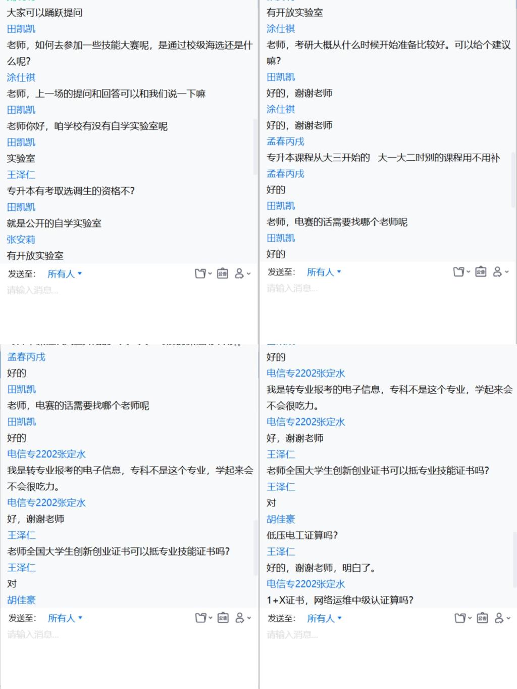 报告会最后,各分会场的对学生提出的各类问题进行和耐心、细致的解答,为同学们答疑解惑、指引方向。在疫情防控情势下,此次线上专业认知教育为新生培养专业兴趣、尽快融入大学生活及制定学习规划打下了良好的基础,希望同学们积极投身到接下来的专业学习中,把握时机,迎接新的机遇和挑战。