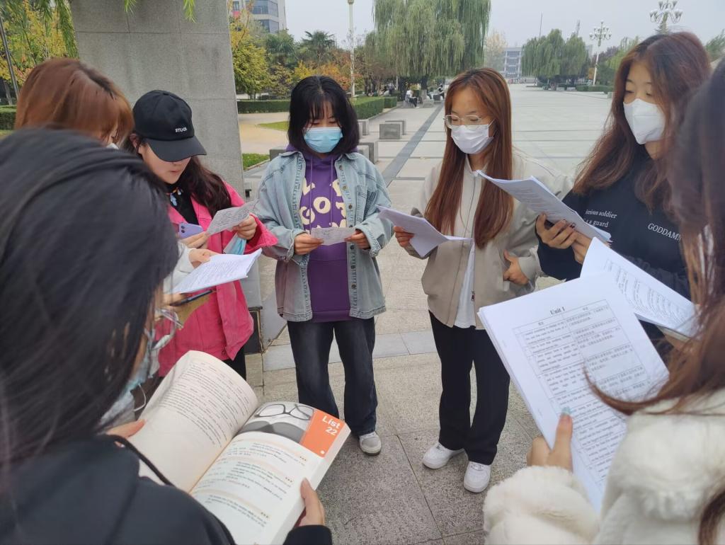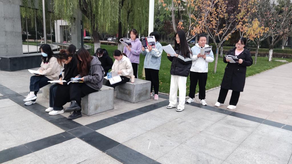 活动号召我系2021级和2022级学生以小组为单位在校园各区域分散早读,我系辅导员与英语代课老师联系,由代课老师布置早读任务,并通过听写的方式检查学生早读成果,对听写结果较好的的小组成员加学分。早读过程中,有的同学持书踱步,沉浸在知识的海洋;有的同学慷慨激昂,诵读英语金句和四级单词。晨光撒在书页,映上发丝,见证着大家的热情和斗志。