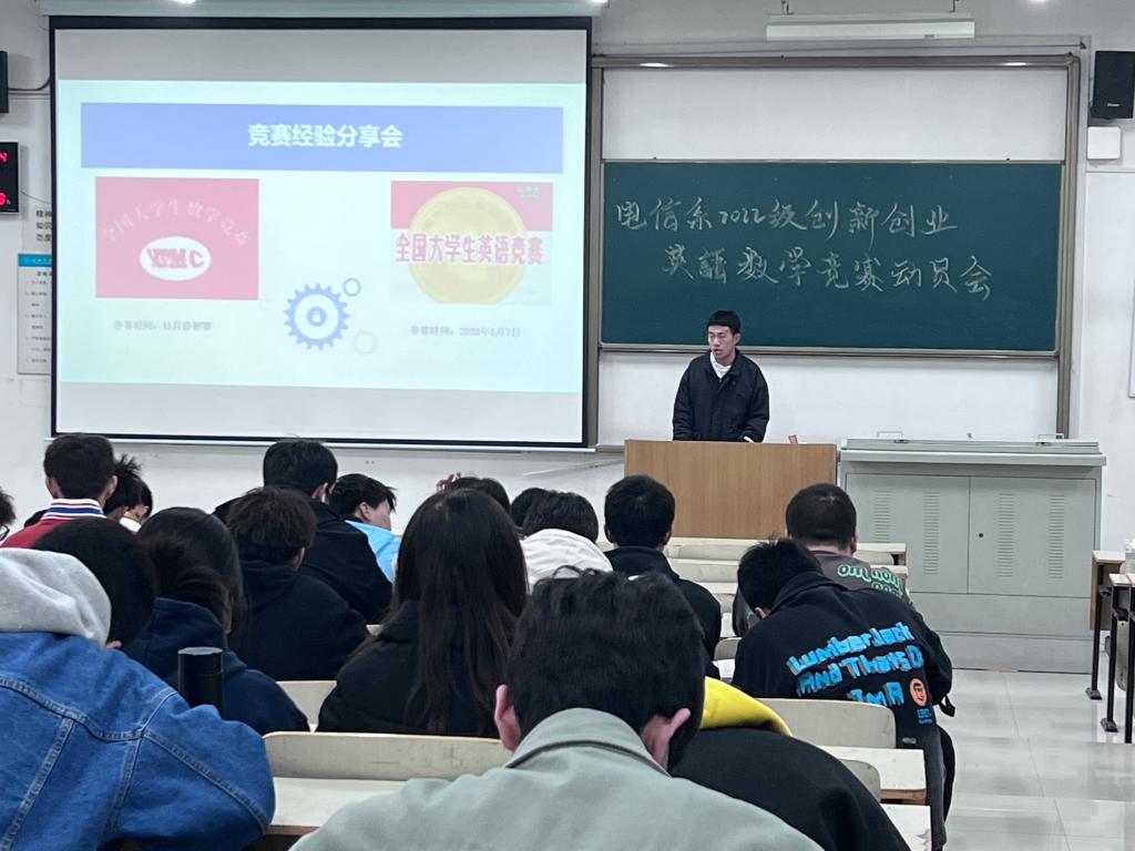 为落实学院学风建设要求,提高我系学生参加各类学科竞赛的动力,营造以赛促学,以赛促练的氛围,3月16日晚,我系面向2022级全体学生在E300教室开展了第十一期博芽讲堂,内容主要是创业创新大赛、英语、数学竞赛等学科竞赛动员暨经验分享。