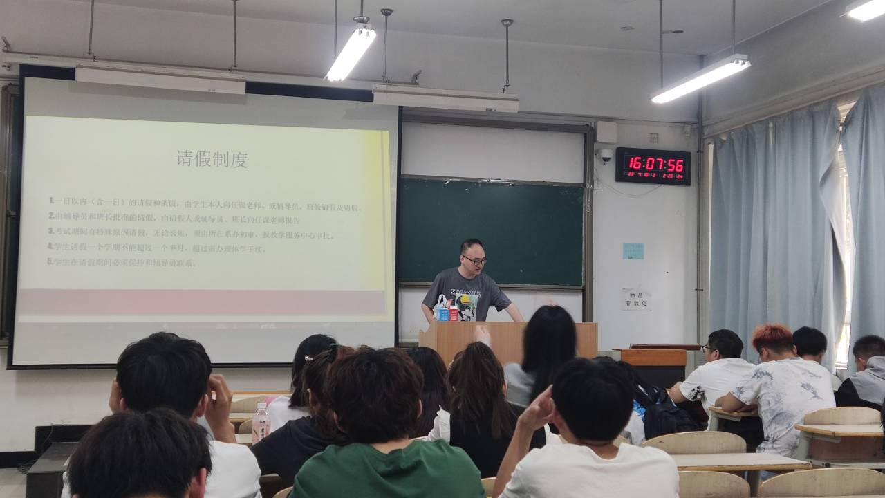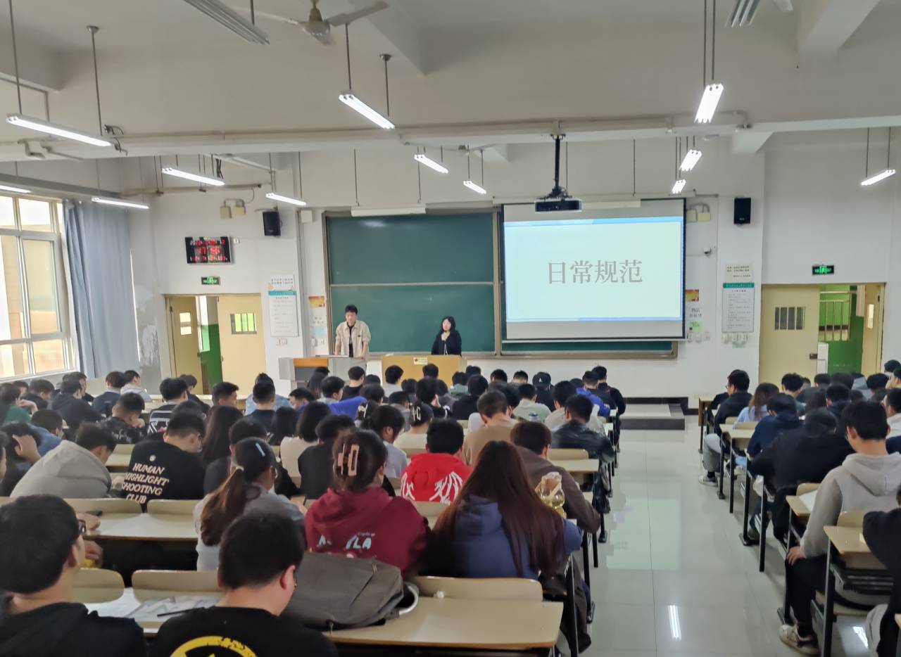 电信系辅导员针对全系学生以“大学生行为规范“为主题召开班会, 班会上各位老师均引导学生应准时上课、认真听讲、积极参与课堂互动、课前擦黑板、保持公共场所卫生、不在非吸烟区抽烟等, 同时也再次强调了早读晚自习、钉钉运动、请假和宿舍制度等日常行为规范。