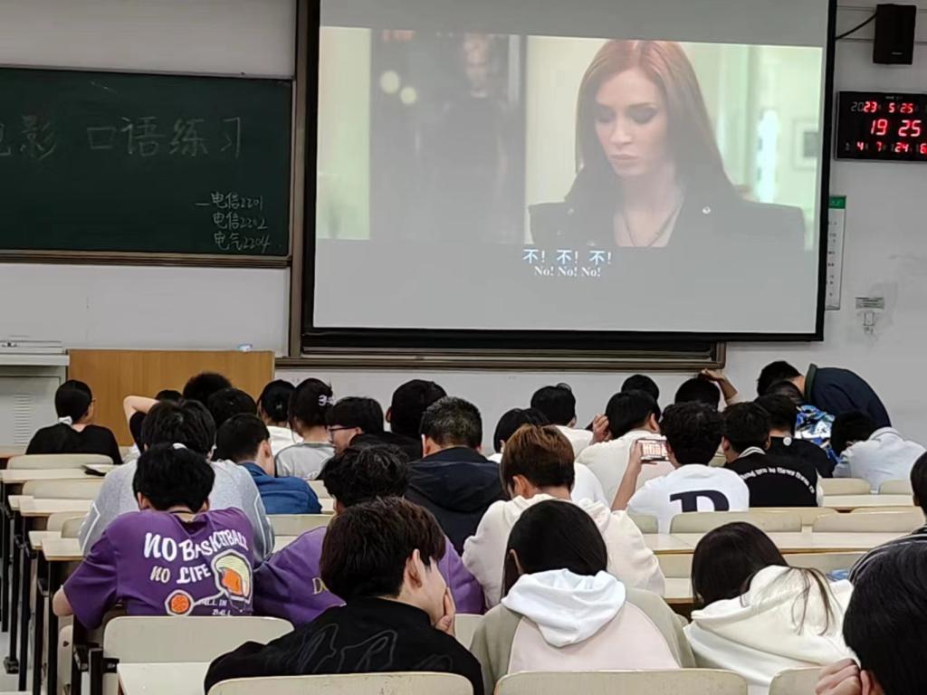 电信系将单周周四定为趣味观影晚自习,本周为22级的同学播放了英文电影《穿Prada的女王》,让学生在轻松愉快的氛围中进行英语学习,通过观看英文电影,营造与母语者所处相同的语言环境,可以更好地练习听力与口语。