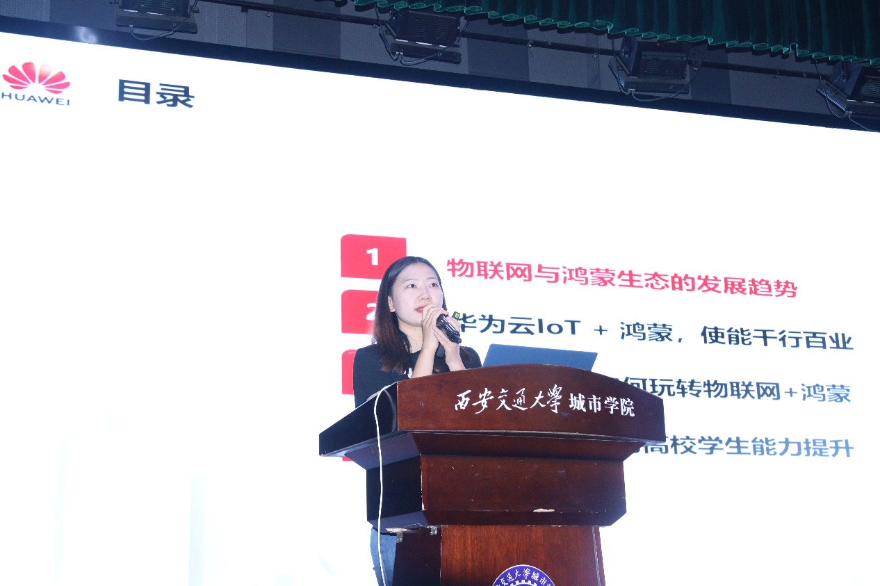 为进一步落实产教融合,建立校企合作新模式,开启我院数字人才培养的创新,5月31日下午14:00,西安交通大学城市学院电气与信息工程系在教二报告厅举办华为云HCSD校园沙龙活动。西安交通大学城市学院副院长朱旭、院长助理张学堂、计算机系主任姚全珠、电气与信息系副主任刘晓明、机械系副主任王国平等老师,以及华为云陕西生态发展总监周珺、华为云高校生态运营总监宁利智等专家教授及电信系、计算机系、机械系200余名学生共同出席了本次活动。华为云专家现场为广大师生讲解IoT+鸿蒙以及API的相关技术知识、发展动态,并通过现场训练营,还原场景化操作,让学生们深度体验华为云的技术魅力。