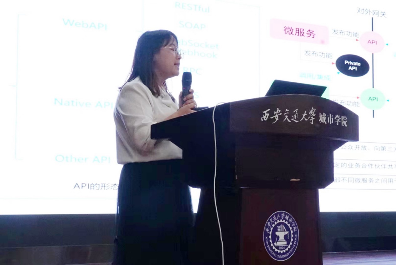 华为云高级技术专家薛静静为学生们带来了围绕 “华为云API Arts:API全生命周期一体化管理平台”展开的主题演讲。她重点讲解华为的研发平台,通过场景化案例展示和趣味性互动体验,激发学生学习兴趣,培养学生的动手实践以及创新能力。活动现场,氛围十分活跃,学生们不仅踊跃参与实践,还和专家进行互动问答,切磋交流。