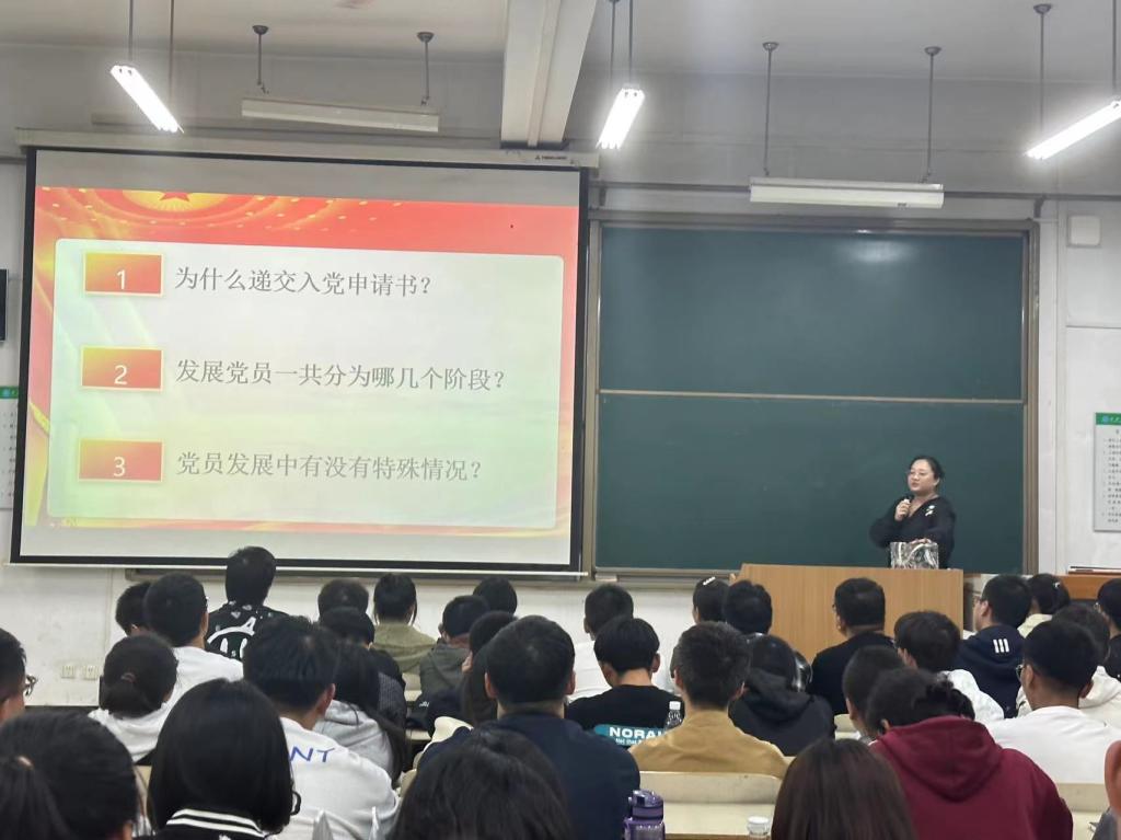 9月27日晚,经济系学生党支部书记廉宇婷分别从入党申请书的要求、发展党员的工作流程、发展党员中的特殊情况向同学们详细讲述了“怎样加入中国共产党”,让同学们充分了解到如何完成从“群众”到“中共党员”身份的转变。随后,管理系学生第二党支部书记李璐向同学们分享了“红色故事会”。无论是大山女孩的“校长妈妈”还是“为人民利益而牺牲的张思德”,均让同学们切实的感受到作为一名中共党员所要承担的责任与使命,很多同学表示要做一名有理想、敢担当、能吃苦、肯奋斗的新时代好青年,并一步一步成为一位优秀的共产党员。
