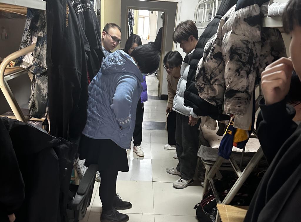 12月12日下午,久久精品亚洲宿舍安全专员史甜甜带领全体辅导员及学生干部走进学生宿舍,进行了宿舍安全隐患排查。在检查过程中,辅导员及学生干部对于各宿舍卫生、用电安全及易燃物等进行了排查,并对宿舍潜在隐患向同学们进行了讲解,提醒同学们对于宿舍安全隐患绝不敢掉以轻心。