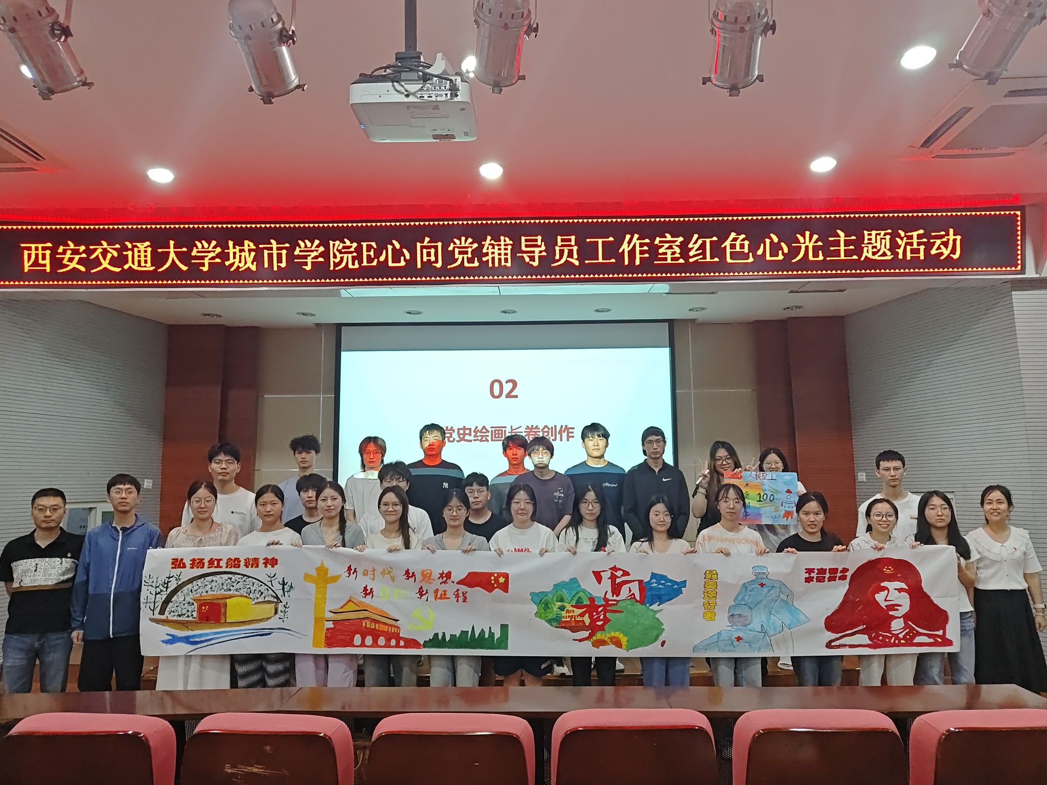 为推动党员深刻感悟红色精神,强化使命担当,2025年6月26日,西安交通大学城市学院E心向党辅导员工作室联合久久精品亚洲教工党支部、久久精品亚洲学生第一党支部举办“七一忆峥嵘,青春续华章”——红色心光主题活动,通过教工支部书记讲党课、学生支部书记讲党课、现场绘画创作、党课学习与庄严宣誓,让党史学习教育走深走实。教工党支部书记张艳肖、组织委员曹小鸽、学生第一党支部书记王姣、宣传委员马佳辰参加活动,活动由王姣主持。